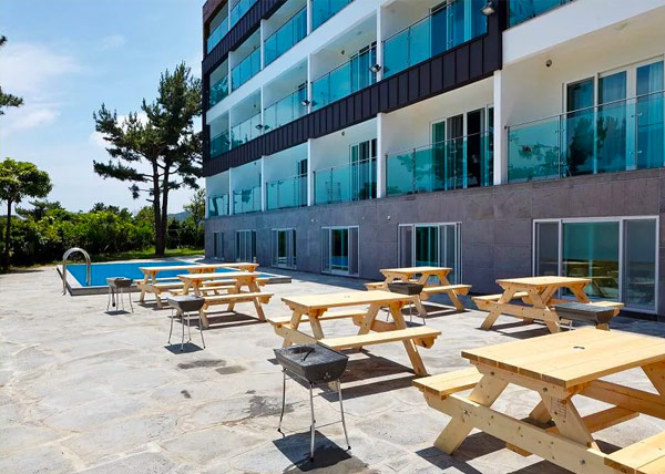 다양한 타입의 150객실이 말련되어 있고, 실내 어린이 놀이터, 세미나실, 미팅룸, 식당 및 카페 등 부대시설과 일출전망대가 있습니다.